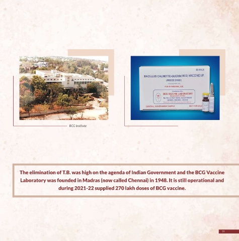 Indigenous manufacturing of affordable The elimination of T.B. was high on the agenda of Indian Government and the BCG Vaccine