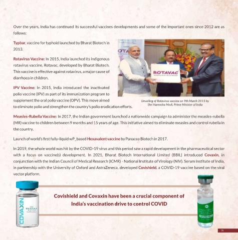 Over the years, India has con nued its successful vaccines developments and some of the important ones since 2012 are as